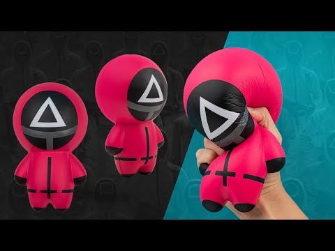 Das auffällige Pink, das stilisierte schwarze Visier mit Dreieck und die kompakte Figur machen diesen Squishy nicht nur zu einem nützlichen Anti-Stress-Tool, sondern auch zu einem echten Blickfang für Fans des erfolgreichen K-Dramas. Mit seiner Größe von ca. 11,5 x 12,5 x 20,5 cm passt er gut in jede Hand und besteht aus softem PU-Schaum, der sich angenehm zusammendrücken lässt und stets in seine Ursprungsform zurückkehrt – ideal für den Schreibtisch oder unterwegs.