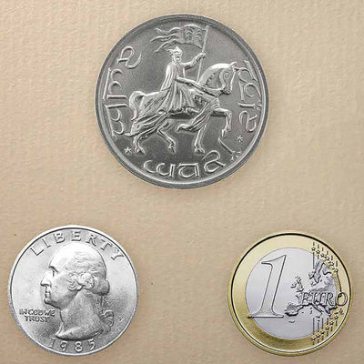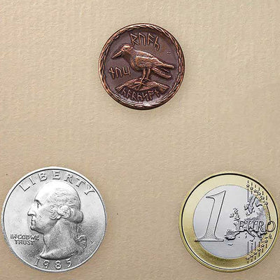The coin was made on old machines using traditional methods and then individually aged by hand with signs of wear ("Used Look"). Thus, the coins look as if they have really been carried through Middle-earth for years! Each coin also includes a booklet with background information about the coin and its manufacture.