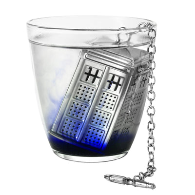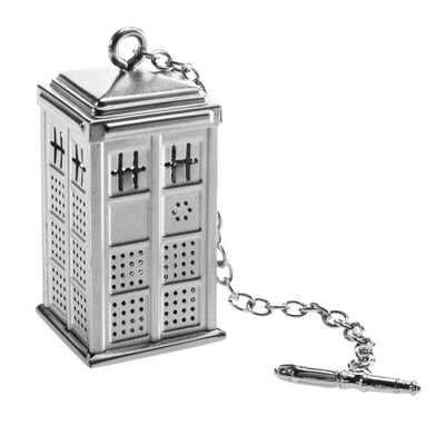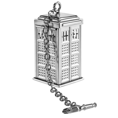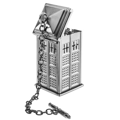 This small metal TARDIS ensures the perfect dosage. The roof can be opened, making it easy to fill the tea infuser. Then simply hang it in a suitable container - a glass pot looks best, of course - and let it steep for 3-5 minutes. It's all about the right measure of space and time. ;) By the way, the handle at the end of the chain is shaped like a small sonic screwdriver.