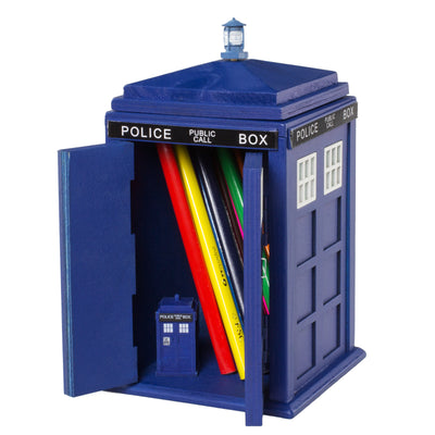 So that your workplace can survive a little longer, we've used our contacts and ordered the Doctor and his time machine to come to you. With the support of the Timelord and the Dr. Who TARDIS pen storage box it should be easy for you to keep things a little tidier. Because the time traveler from the cult British series Doctor Who is undoubtedly one of the most tidy characters ever to have flickered across the screen.