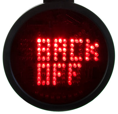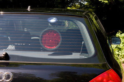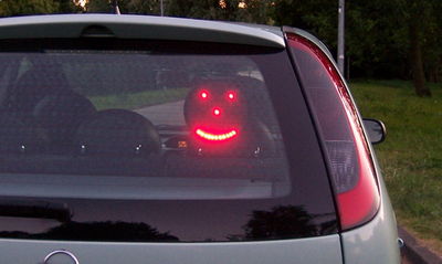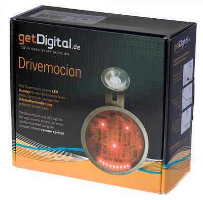 The Drivemocion is an LED display for the rear window of your car, which can be controlled with the included infrared remote control. The following 5 messages can be displayed for 3 seconds each: