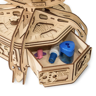 And apart from that, the Eco-Wood-Art wooden construction kit "Globe" will let you boast later that you have built a real globe with a secret compartment with your own hands! Laser-cut wooden parts await you in this set, which you can use to assemble a movable model of our earth that is second to none. Because the base not only impresses with lots of facts about our home planet, but also conceals a secret compartmentwhich can only be opened using an equally secret mechanism! After successfully assembling the globe, you can also paint it with wood paints (not included).