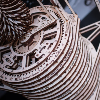 For example the "Eco Wood Art" wooden kit "Planetarium"! This set contains 534 laser-cut wooden parts that you can use to build your own planetarium! You don't need any glue, just a little patience and the illustrated instructionsthat come with the set. We also recommend using pliers and a cutter or penknife to ensure smooth assembly.