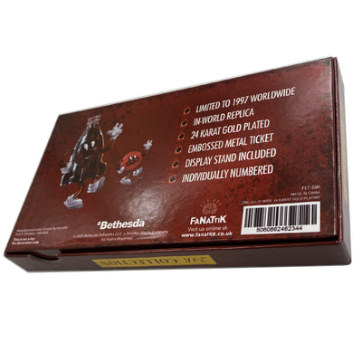 The Fallout Limited Edition Nuka World Ticket is limited to 1997 pieces worldwide in reference to the release year of the first game and additionally coated with real gold! Of course, you could use the ticket to gain entry to the 'Nuka World' amusement park from Fallout 4 – but in your place, we would rather use the included stand to display your collectible. :)