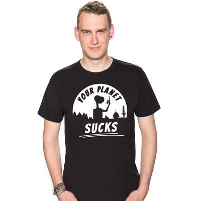 If you've always wondered what an alien would think of Earth if it accidentally landed here – the Your planet sucks T-shirt provides the answer.