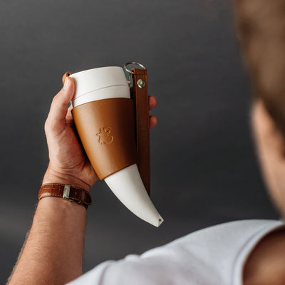 Drinking horns have undergone a real renaissance in recent years thanks to medieval markets and metal festivals. Technically, they do not differ much from their ancient counterparts: An animal horn is processed so that drinks such as mead or wine can be consumed from it. Occasionally the rim or the tip is coated with metal, but otherwise the design is truly timeless. As stylish as they may be, drinking horns have one major disadvantage that makes them almost unusable in everyday life: they have no lid.