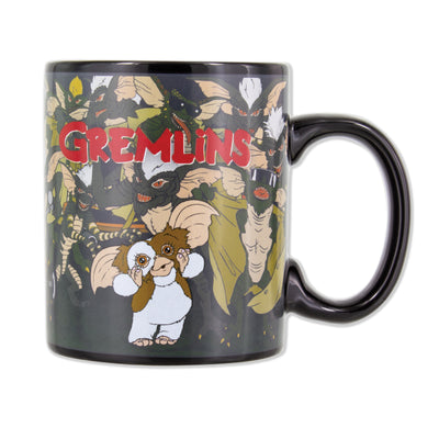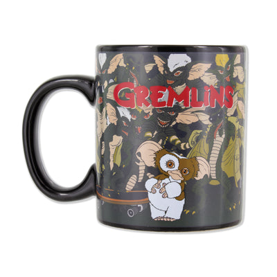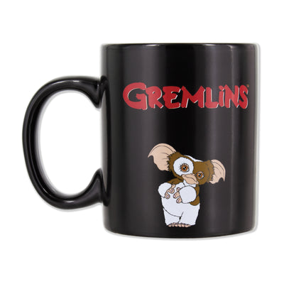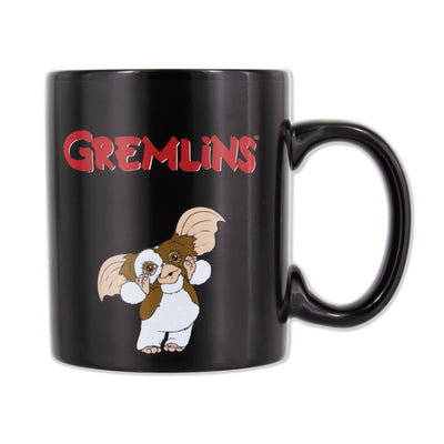 • Ceramic mug with thermo effect in Gremlins design; Shows the cute Mogwai Gizmo in two poses and the logo of the cult film; As soon as a warm liquid is poured in, the nasty Gremlins appear behind Gizmo; Officially licensed product