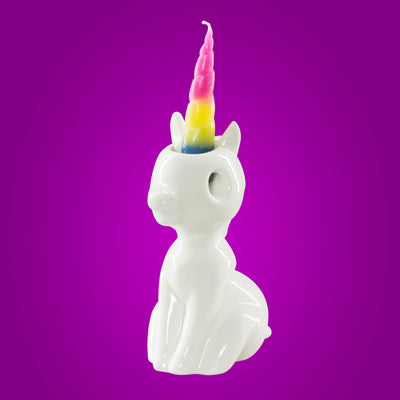We did it. We made a unicorn cry. How? Unfortunately, we can't reveal that because our methods violate numerous nerd laws and would forever make us a target for unicorn lovers. You want to know why we brought tears to the eyes of magical and gentle creatures? So that you can call a "Crying Unicorn" candle holder your own!