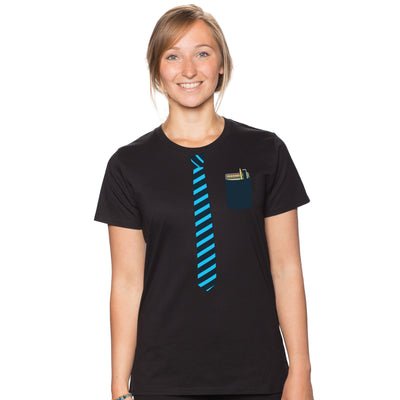 A little side note: This print actually looks best on a regular shirt; it doesn't look as good on girlies and hoodies. Additionally, please note that the tie appears shorter the larger the shirt size chosen.