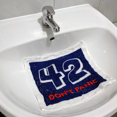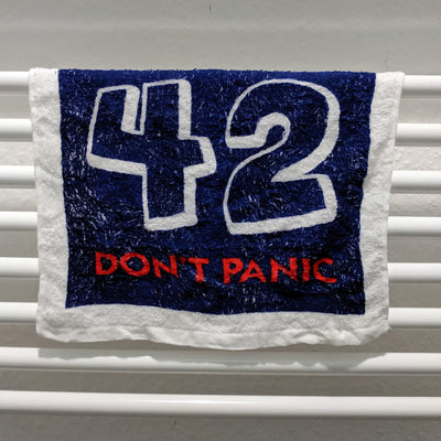 • Pocket towel made of cotton with the number 42 and the phrase "Don't panic"