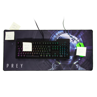 For the XXL Gaming Mousepad "Prey", we can at least guarantee 99% that it is indeed a huge mousepad with a size of 80 x 35 x 0.4 cm, providing space for both mouse and keyboard. This way, you are well-prepared to take down the Typhon. The rubberized underside will ensure that you can shoot precisely and securely, even in the heat of battle. Wait a minute, why did your mouse just hiss? Oh no! Run!