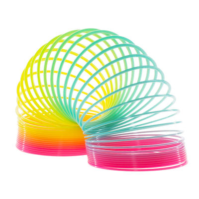 Each of us knows them from childhood: These colorful plastic spirals that cheerfully tumble down the stairs when nudged. From today's perspective, one might wonder why such a simple toy could exert such fascination. We can't exactly explain why the Rainbow Spring Rainbow Spiral fascinates us so much either. Maybe because the gliding of the spiral from step to step takes us back to our childhood - or because, as nerds, we are interested in the physics behind the whole thing. We just say: inertia, impulses, kinetic energy, and so on. ;)