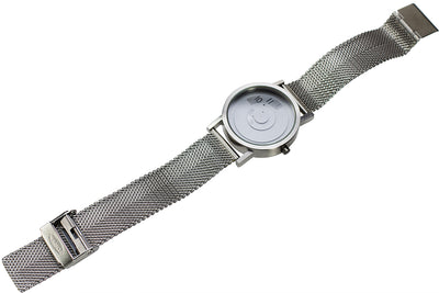 The watch is made of high-quality stainless steel and is fitted with a bracelet made of stainless steel mesh with an adjustable folding clasp, which makes it pleasantly cool on the wrist and therefore comfortable to wear even on hotter days. The material is designed in such a way that small hairs or sensitive items of clothing are not affected.