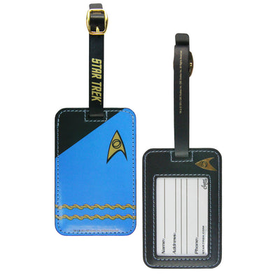 For example, with the "Star Trek" luggage tag! This stylish luggage tag made of faux leather can be quickly labeled with your contact details and from now on identifies your suitcase as an official piece of Starfleet luggage! With the included strap, the tag can be attached to suitcases, backpacks, and more.