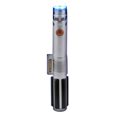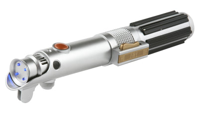 This flashlight not only looks like the hilt of Anakin Skywalker's lightsaber, but it also emits almost the same sounds: When turning it on and off, the typical and well-known lightsaber sound can be heard. Additionally, the beam of the flashlight is blue. The hilt itself is also largely modeled after the original hilt from the Star Wars movies.