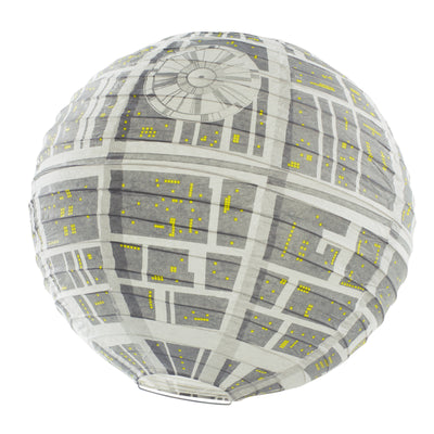 The Star Wars Death Star lampshade is suitable for all types of light sources. If you use it together with the good old light bulb, it should not exceed a wattage of 60W and should preferably not come into contact with the paper, as it gets hot during prolonged operation. The same applies to candles: If you want to participate in a contemplative lantern parade with the Death Star in hand - otherwise this lampshade will end up like the space station it represents. ;)