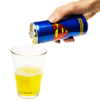 However, there is a small catch: only residents of the planet Krypton gain the ability to fly after consuming a can of energy drink... the same applies to super strength and invulnerability. So if you're not from Krypton, please don't even try to jump off a skyscraper or walk across a busy highway!