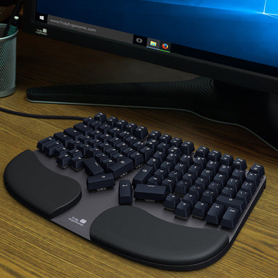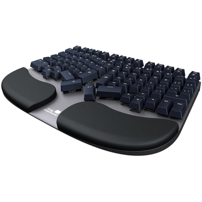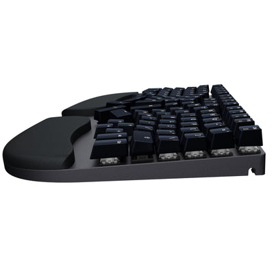 The keyboard, unlike many other ergonomic keyboards, has 100% of the standard keys, including all function keys, while using only 60% of the space of a typical keyboard. The layout follows the familiar QWERTY standard, although some of the special keys are specially arranged - for example, the Enter key is within reach of the right thumb. However, the key assignment can be easily adjusted via third-party software. The shape of the keyboard and the arrangement of the keys prevent wrist twisting and reduce the distance of the mouse to the hands in their neutral resting position on the comfortably padded wrist rest.