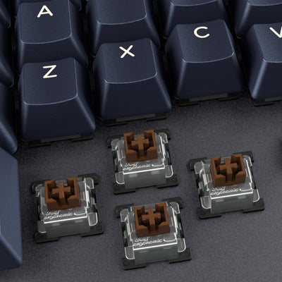 The high-precision infrared switches use infrared light to register individual keystrokes. They provide a consistently pleasant and precise typing feel and allow for typing at lightning speed. Moreover, they are significantly less prone to wear than purely mechanical switches. These Tactile Silent switches feature a noticeable actuation point while being wonderfully quiet. Of course, the keyboard also features full n-key rollover and anti-ghosting.