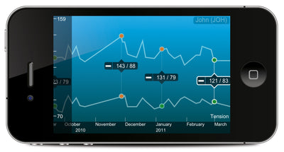 The app prepares the data as graphs, helps to interpret the values and provides information on the subject of blood pressure measurement. There are also a number of other special functions: For example, the current blood pressure values can be sent directly from the app to the doctor by e-mail. This saves time and travel! Synchronization with the Internet health services Microsoft HealthVault and Google Health is also possible, as well as linking to your personal Facebook or Twitter account.