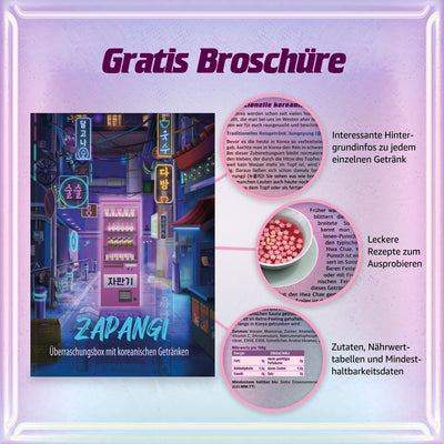 To help you find your way around a bit better and learn exciting facts about Korean soft drinks, the Zapangi Box includes a detailed brochure that not only provides information about the individual drinks and cultural background but also offers some recipes.