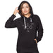 80% cotton from controlled organic cultivation and 20% recycled polyester with a thickness of 280 g/sqm. The hoodies have two separate pockets and fit true to size. Hoodies are only available in black and, depending on the design, in sizes S-5XL.