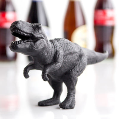 Con esta joya de hierro fundido, no querrás buscar otro abrebotellas. ¿Quién escondería un T-rex en el cajón? Si pronto notas anillos de vibración en tu refresco o el vaso de cerveza deslizándose de la mesa, ¡no te preocupes! El Tyrannosaurus no te partirá en dos, ¡solo quitará la tapa de tu botella!