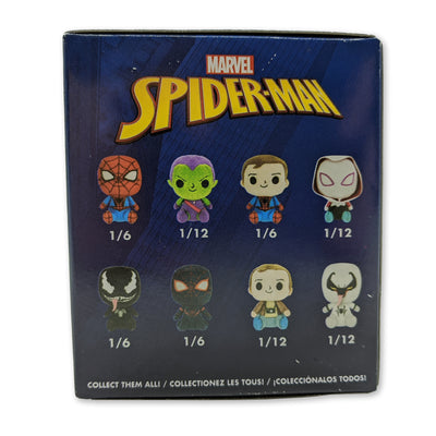 Desde 1962, Spider-Man se ha balanceado a lo largo y ancho de la historia del cómic y puede mirar hacia atrás en innumerables cómics, videojuegos y varias series de películas. Las figuras de colección de peluche de Spider-Man de Funko Marvel Mystery Minis traen a algunos héroes y villanos de las aventuras de Spidey como adorables figuras de peluche a tu hogar. Cada paquete contiene una de las ocho figuras posibles.