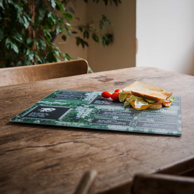 Por supuesto, la comida también debe ser absorbida entre cuando se juega durante horas. Sin embargo, uno también quiere rodearse de reinos extranjeros con objetos familiares. Eso viene Tarjeta de gráficos de corte de tablero ¡solo bien! Dado que está hecho de vidrio y la presión está unida en la parte posterior, no se rasca y se puede limpiar fácilmente: el agua no le importa a este hardware. Además, los pies prácticos de silicona aseguran que nada se deslice.