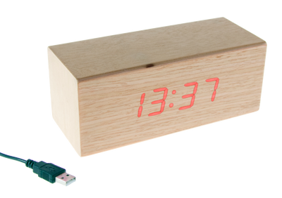 El diseño del reloj de madera LED gira en torno al contraste entre la naturalidad y la artificialidad. Su forma simple y rectangular es atemporal y encaja bien entre monitores y computadoras. La veta natural y ligeramente irregular de la madera suaviza la estricta geometría y crea un contraste con las superficies estériles de plástico y metal que suelen encontrarse en los escritorios. La naturalidad del material es interrumpida por los LEDs rojos brillantes de la pantalla digital, que brillan desde dentro a través de la madera. De este modo, el reloj de madera LED sigue siendo fiel al estilo geek al que estás acostumbrado.