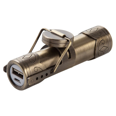 El Power Bank en diseño de steampunk Le permite cargar en los próximos dispositivos modernos, como teléfonos inteligentes, sin arruinar su ropa directamente. En la carcasa de metal estable, que se puede cerrar con una tapa, hay un 3000 mAh-Shebattery que contiene con la contenida Cable de 3 vías (Adecuado para Micro USB, Lightning y USB-C) y puede conectar sus dispositivos.