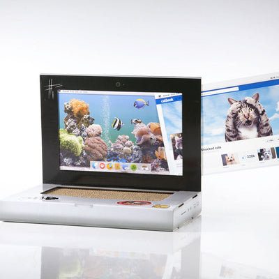 • Kratzspielzeug für Katzen in Form eines Laptops aus Pappe