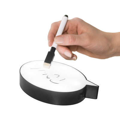 C'est tout autre chose avec la Lumière de bulle de dialogue magnétique pour écrire ! Cette bulle de dialogue peut être simplement collée au réfrigérateur ou à une autre surface magnétique, écrire un message avec un marqueur pour tableau blanc et ainsi laisser un message à vos colocataires. Et le meilleur ? Grâce à la fonction lumière, la bulle de dialogue peut également attirer l'attention dans l'obscurité !