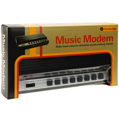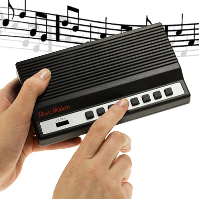 Ce gadget est en fait un mini-clavier avec lequel tu peux jouer de la musique dans le style modem. 8 notes (soit une octave complète), 3 modes et 5 tonalités différentes t'offrent des possibilités presque infinies pour satisfaire ton besoin de rétro. Mais ce n'est pas tout ! Le modem musical dispose même d'une prise AUX In et d'une prise AUX Out, de sorte que tu peux par exemple le connecter à un haut-parleur ou le relier à un autre clavier. Cela ouvre encore plus de possibilités pour chanter et danser avec les autres :)