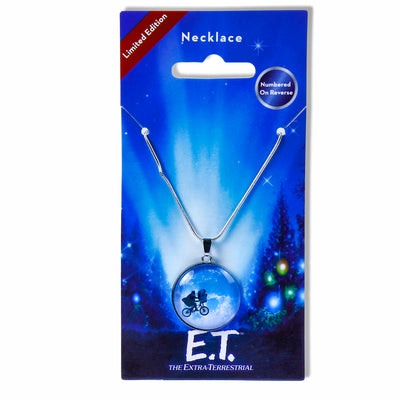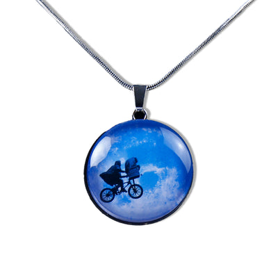 Die Wahrscheinlichkeit, E.T. in deinem eigenen Gartenschuppen zu finden, ist relativ gering. Aber für solche Probleme gibt es ja unseren Shop. Hier kannst du dir zumindest ein Bild des wohl bekanntesten Außerirdischen aller Zeiten sichern. Die Abbildung der finalen Szene des Filmes ist in diesem Anhänger konserviert, wie in einer kleinen Zeitkapsel. Damit du ihn auch gleich tragen kannst, wird die Kette natürlich mit geliefert.