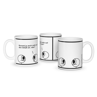 Auf genau diesen Umstand weist der Erzaehlmirnix Webcomic-Becher hin. Der Aussage der einen Figur kann man auch nichts mehr hinzufügen. Also einfach Kaffee einfüllen und genießen. Wer hätte gedacht, dass das so einfach sein kann?
