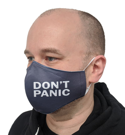 Con il "maschera viso "Don't Panic puoi sempre ricordare a chi ti sta intorno di mantenere la calma e di fare un respiro profondo! Questa maschera in tessuto è stata realizzata in Germania in una fabbrica di Kiel e può essere indossata in un attimo per trasformarti in un autostoppista intergalattico dai nervi d'acciaio! Poiché sia la bocca che il naso sono coperti e la maschera è quindi considerata una "maschera per tutti i giorni", puoi indossarla anche per andare a fare la spesa e sui mezzi pubblici.