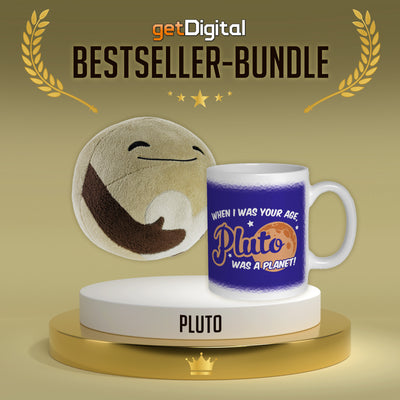 In unserem Shop findest du alles, was das Nerd-Herz begehrt – und noch ein paar Sachen mehr. Denn wir entwickeln auch gerne mal selbst Produkte, die es so noch nicht gibt. Wie zum Beispiel den plüschigen Pluto und die Tasse, mit der du deinen Freunden, Kollegen und der ganzen Welt zeigen kannst, dass Pluto für dich ein echter Planet bleibt! Im getDigital Bestseller-Bundle: Pluto bekommst du diese zwei von uns selbst entwickelten Produkte zum reduzierten Preis!