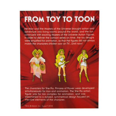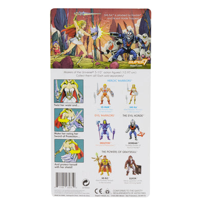 • She-RaShe-Ra, la sorella gemella di He-Man, non ha nulla da invidiare al fratello quando si tratta di arti marziali ed eroismo! Impugna non solo una spada, ma due, e ha anche uno scudo nella manica.