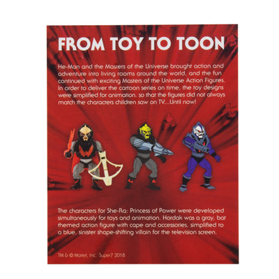 Se non puoi più definire le action figure originali come tue o se sei salito sul carro di He-Man solo dopo gli anni '80, puoi mettere le mani su "Action figure vintage di Masters of the Universe" della Wave 1 e affrontare ancora una volta la malvagità! Queste reinterpretazioni delle figure originali adattano visivamente il design dei personaggi ai cartoni animati e sono disponibili nelle seguenti varianti: