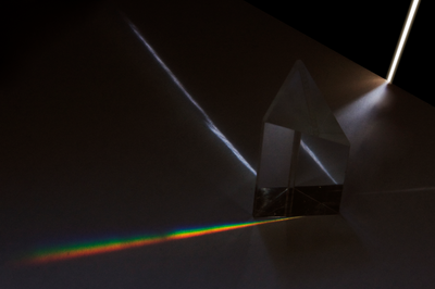 • Con questo prisma si possono realizzare numerosi esperimenti di ottica, ad esempio la luce bianca può essere scomposta nello spettro dei colori.