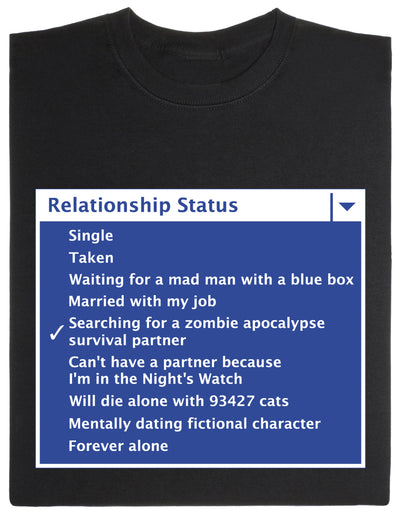 Siamo ormai abituati a informare le persone che ci circondano e gli sconosciuti su tutti i dettagli della nostra vita in tempo reale, compreso, ovviamente, lo stato della nostra relazione. Purtroppo, l'olografia non ha ancora raggiunto il punto in cui lo status appare sempre accanto alla nostra testa nella vita reale. Risolviamo questo problema con, ovviamente, una camicia ;)