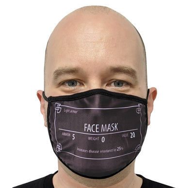 Seit Kurzem erreichen uns Berichte, dass eine finstere Seuche namens Koh-Roh-Nahr den Rand des Himmels in einem bekannten Fantasy-Videospiel heimsucht. Aus diesem Grund empfehlen beide Konfliktparteien des Bürgerkriegs den Bewohnern, in der Öffentlichkeit Masken zu tragen. Wir können an dieser Stelle die magische RPG-Gesichtsmaske empfehlen, die nicht nur der Inventaransicht eines Items aus dem Spiel nachempfunden ist, sondern auch noch extrem nerdig daherkommt!