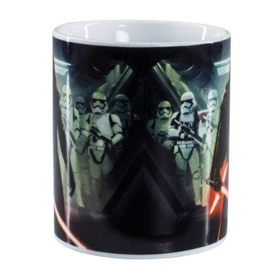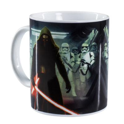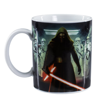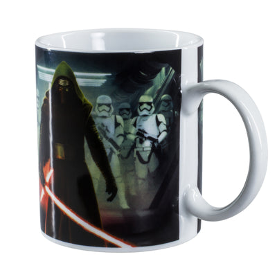 • La tazza è stampata a tutto tondo e mostra la stessa immagine di Kylo Ren e degli Stormtroopers sul fronte e sul retro.