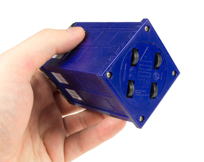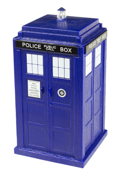 Maar wacht, wat gebeurt er? Nu verschijnt ook nog Tardis, de tijdmachine van Doctor Who, ten tonele! Net als de oude speelgoedauto's van vroeger, wordt ze achteruit over de tafel getrokken en zo in beweging gezet. Tardis zal dan ook rondrijden en daarbij om haar eigen as draaien, totdat ze (toevallig? Nee, doelbewust!) op Dalek stuit en hem genadeloos van de tafel duwt. Ha! Wie zal hier wie extermineren!