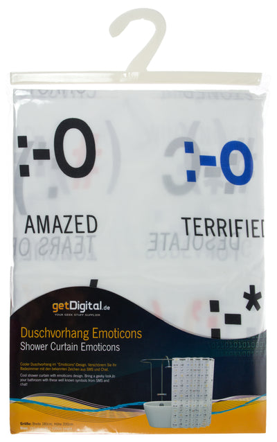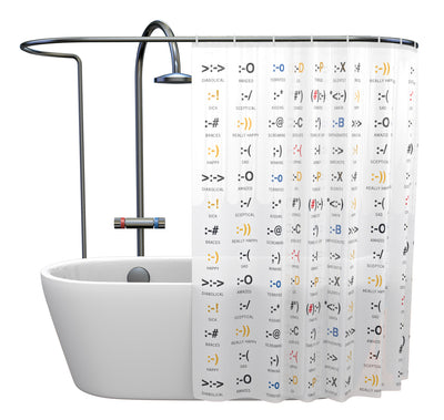 Das muss doch gar nicht sein! Mit unserem Duschvorhang Emoticons kannst Du Dein Badezimmer nämlich im Handumdrehen so umgestalten, dass es in ansprechender Weise Dein Geeksein wiederspiegelt und Du vielleicht sogar noch den ein oder anderen neuen Emoticon dazulernen kannst, während Du duschst ;) Das ist sicherlich interessanter, als die Rückseite der Shampoo-Flasche zu lesen.