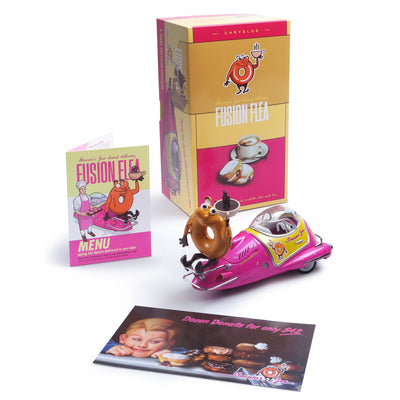 Wir freuen uns, Ihnen mitteilen zu dürfen, dass Sie unser alljährliches Preisausschreiben gewonnen haben und von nun an stolzer Besitzer eines "Slocum's Joe Fusion Flea"-Replikats sind! Diese Metall-Nachbildung unseres ikonischen Lieferfahrzeugs im Maßstab 1:18 ist weltweit auf 1.000 Exemplare limitiert und wird die Blicke aller Besucher auf sich ziehen. Die farbenfrohe Streusel-Lackierung verbreitet sofort Freude und unser Maskottchen, das es sich auf dem Heck bequem gemacht hat, weckt garantiert Appetit auf unsere exquisiten Produkte.