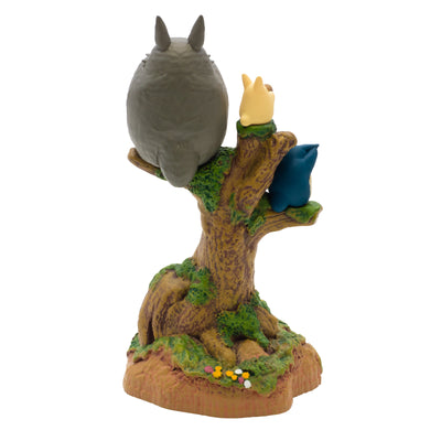 Die Statue aus widerstandsfähigem, detailreich bemaltem Kunstharz ist in Anlehnung an eine der magischsten Szenen des Films gestaltet: Nachdem die Totoros in Satsukis und Meis Garten einen gigantischen Baum wachsen lassen, sitzen sie auf einem der obersten Äste und spielen auf ihren Ocarinas.