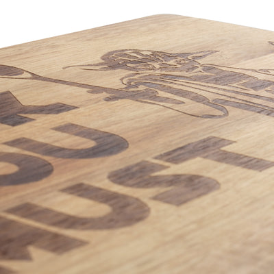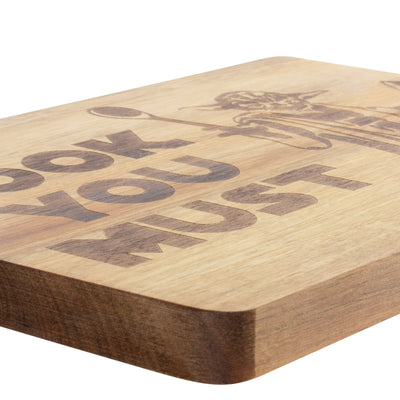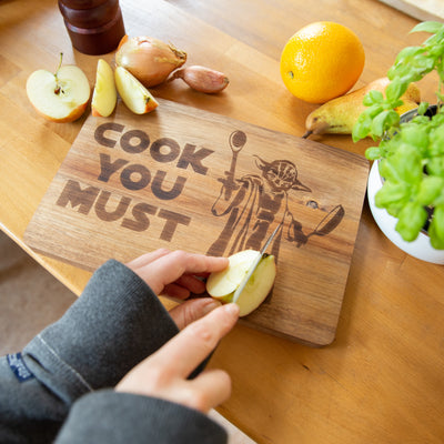 De "Cook You Must"-houten snijplank toont een bekende Jedi-meester die dit heeft ingezien en inmiddels is overgestapt op een pollepel en koekenpan. De uitdrukking "Cook you must" herinnert eraan dat aanstaande Jedi's ook in de keuken vaardig moeten zijn. Blijkbaar is correcte grammatica echter niet zo belangrijk...