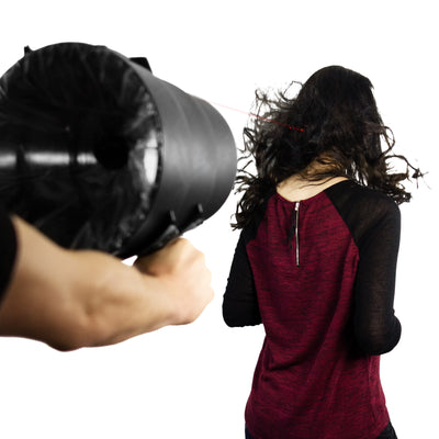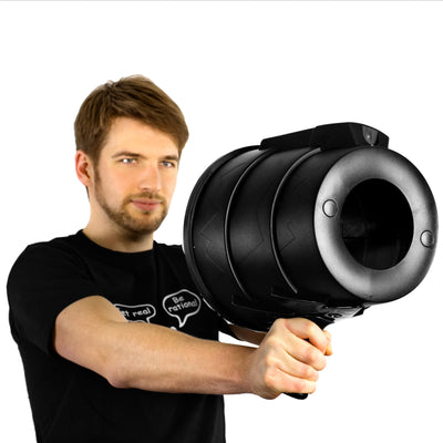 Met de Airzooka kun je "luchtballen" maken die je tot 15 m ver kunt schieten. Bijvoorbeeld om iemands haar lekker door de war te brengen. Of om de stapel papier op het bureau van je collega een beetje in beweging te brengen. :)